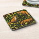 Foxes and buttercups on black beverage coaster