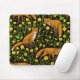 Foxes and buttercups on black mouse pad
