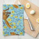 Foxes and buttercups on pool blue kitchen towel