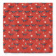 Little foxes walking in the wonderland of holiday stars with bird. On red.