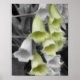 Pretty creamy white foxgloves done in black and white with partial color flower poster print. Flower photography by Susan. For more floral, animal, and nature posters and prints, please visit my poster gallery Smilin' Eyes Posters. This image is available on many cards and products in my main store Smilin' Eyes Treasures.
