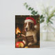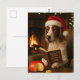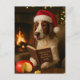 Humorous Christmas postcard featuring a very cute Foxhound reading 'The Cheese Tax at Home Regulations 2025' whilst trying to resist the urge to eat the cheese that someone's left on the table right in front of its nose!