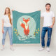 Fun, trendy argyle pattern fleece blanket with cute sitting fox and banner text saying Foxy Lady. Customize name text or delete.