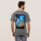 My 11 yo wore adult XL (5’7” 165#). The 8yo is small framed. She wore adult small and tied it in the back. Dark haired male wore adult large and 5’9”, 110# female wore adult medium . Good quality dark Heather gray, Gildan brand shirt. -it was next up from basic choice and cost about $20 per shirt. Not too thick or thin. Washed and dried well, no major shrinkage. Not see-through. Can wear a bra under it fine. Screen print is just as shown and well done, front and back.