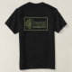 On the front a brown and green fractal leaf/needle pattern camouflage suitable for either coniferous or deciduous forests. Add your own text. On the back is the logo of mythical Fractal Camouflage Systems developer of this and other camouflage patterns.