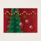 Layers of fractals make up this stylized Christmas design. A muted red backdrop, a spiky green tree, gold stars and snowflakes hanging from a strand of red and gold beads, and three red balls with a twirling gold design hanging in front.