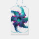 Swirls of pink, aqua, blue and purple with a white background make up this beautiful abstract fractal image. Now imagine it spinning around.
