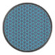 A mesmerizing, intricate pattern composed of glowing blue, flower or web-like structures arranged in a symmetrical, repeating geometric formation. The interconnected lines and nodes create an almost fractal-like appearance, resembling a fusion of neon circuitry and delicate lacework. The dark background enhances the luminescent effect, making the design appear as though it is pulsing with an electric glow.