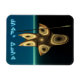 A brown-toned fractal image suggesting a highly-stylized Inuit hunter, wearing traditional fur clothing, holding a harpoon with an ivory head. The image is superimposed on a background depicting the dark polar winter. Inuktitut text reading "Kuvianak Innovia" (Merry Christmas), in the syllabic alphabet adopted in Nunavut, also appears in glowing blue and white. The Inuit are commonly referred to as Eskimo, but that term is now disfavored as it is considered to be pejorative."