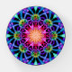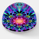 This cool paperweight features a fractal mandala image with rainbow colors of red, orange, yellow, green, blue, purple and pink on a black background.