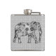 Mixed pattern digital graphic of a richly embellished elephant against an arabesque tiled background - Fractal swirl pattern in black, white and shades of grey / gray against a silver grey background