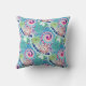 Fractal swirl pattern, turquoise, pink, multi throw pillow
