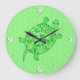 Mixed media digital graphic of a turtle in a fractal pinwheel pattern against an arabesque tiled background - shades of green ranging from pastel lime to deep emerald