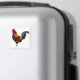 A lively image of a leghorn rooster, in vibrant gold, orange, red, blue, green and black, created in a fractal style.