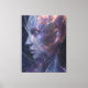 A human profile fractures into luminous threads of electric blue, violet, magenta, fiery orange, and gold, glowing against deep shadow like neural lightning or cosmic energy breaking free. Fine prismatic lines and subtle sparks weave across sharp features, blending vulnerability, power, and futuristic mystery in a hauntingly beautiful digital portrait. Ideal for modern bedrooms, home offices, meditation spaces, gaming rooms, therapy offices, or as striking gifts for anyone drawn to cyberpunk aesthetics, emotional depth, identity exploration, sci-fi art, or introspective statement pieces.