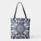 This is a design of geometry and chaos with an abstract tribal feel, Fractured Harmony weaves blue, black, and gray into a fun, attractive modern design with a traditional vibe.