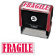 Perfect for keeping your business organized, these rubber stamps include the word "FRAGILE" inside a rectangular frame.