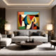 This work merges cubist rigidity with surreal imagination, crafting a universe where logic dissolves into visual poetry.
