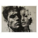 Fragmented portraits of two individuals, united in an abstract composition that explores the complexity of human emotions. The expressive technique and monochrome palette intensify the visual impact.
