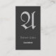 This professional business card features a bold Fraktur-style initial rendered in a sophisticated palette of grays. The clean, modern graphic aesthetic makes it an ideal choice for calligraphers, historians, or creative professionals who appreciate a refined, artistically driven design for their networking tools. This high-quality card adds a touch of inspired personality to your identity, perfectly blending classic typography with a contemporary look for a standout, professional impression. [gem 260216]