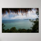 A tropical sea view. Try to use the tree and roof top in front ground to frame it up.