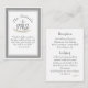 This formal design features a silver and white border framing your text which is displayed in the traditional format. Front center image displays "IHS", which is the traditional Catholic symbol for Christ, and is displayed with a silver cross and palm branch. Your chosen Bible verse is displayed below image. Reverse side features reception and lodging information. Designed to coordinate with the "Framed Catholic Bible-Verse" wedding suite collection.