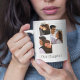 A white base mug with ivory panel, featuring three stacked photos outlined in white. A taupe washi tape accent adds a layered feel, while “Our Chapter” in serif text anchors the layout. A clean design built for capturing everyday moments.