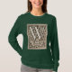 This beautiful monogram has the appearance of being a woodcarving. The capital ‘W’ is outlined in black while the leaves and frame are a rust color which makes the ‘W’ stand-out from the background.