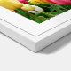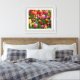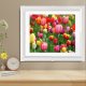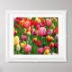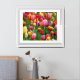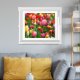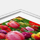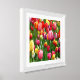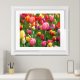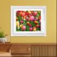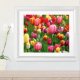 Poster is shown framed and all ready to hang, shown with a photo print of a field of pretty colorful tulips.