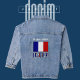 Personalized women's denim jacket has the French Flag with the word FRANCE below in letters colored with the French tricolor. Above is a spot for your name, in white letters, or someone else's, so you can create a customized gift or a personalized look. Fun to wear at a family reunion, travel group, or club.