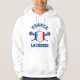 Flag shield design with crossed sticks. Designs available in both regular and weathered, vintage-style versions. France lacrosse.