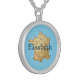 The design for this charming pendant features an editable name over a map of France on a sky blue background. The featured name can be changed to any name or text of your choice, creating a personalized gift for a French friend or loved one. Font and background colors can also be altered as desired.