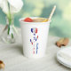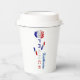 Personalized party paper cups features a rose flag of France. Fun way to share your pride in your French heritage, ancestry and culture. Design shows a rose colored in the blue, white, and red tricolor of France. The leaves are decorated the same way. But the stem is the word FRANCE, also in the colors of the flag. On the right is a place to add a name to personalize your favor. Great for Bastille Day favor. Lovely Mother's Day party favor. Fun for family reunions, travel groups, and clubs.