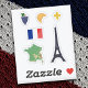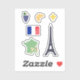 A collection of stickers of France symbols: Eiffel Tower, blue white red flag, croissant, royal Fleur de lys, grapes vines, map!