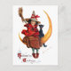 Surprise your family and friends with a charming vintage Halloween card featuring a funny witch and her black cat on a sickle moon, painted by the American illustrator Frances Brundage.