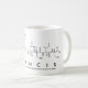 Francis spelled out in amino acids as F R A N C I S (Phenylalanine Arginine Alanine Asparagine Cysteine Isoleucine Serine) on a mug for the scientist in you.
