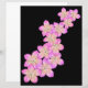 Features hand-drawn pink and yellow frangipani flowers on a black background.