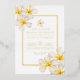 Pretty botanical watercolor white frangipani plumeria flower wedding invitations watercolor flowers with a real gold foil frame and text. Beautiful floral wedding invites are ideal for a botanical or tropical flower and beach themed wedding. Personalize with your own details. Other matching items also available. © Original floral watercolor painting art and design by Sarah Trett for www.mylittleedenweddings.com