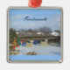 Frankenmuth Michigan Christmas Ornament shows the Frankenmuth Wooden Covered Bridge with snow in a winter scene