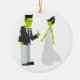 Lightweight, smooth, pure white ornament with nice sheen. Perfect size to be seen from across the room ... and to attract closer inspection! Price was great for ordering enough for the whole family! Clear, bold black design just as requested. Matches the order exactly. Just so nice!