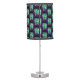 The lamp looks exactly like the picture, bright and colorful. The lamp shade is plastic not what I expected, however I love it! The printing is clear and the name can easily be read.