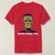 My 11 yo wore adult XL (5’7” 165#). The 8yo is small framed. She wore adult small and tied it in the back. Grandma wore adult large with long sleeve shirt underneath. Tall girl adult medium. Dark haired male adult large. Good quality dark Heather gray, Gildan brand shirt. -it was next up from basic choice and cost about $20 per shirt. Not too thick or thin. Washed and dried well, no major shrinkage. Not see-through. Can wear a bra under it fine. Screen print is just as shown and well done, front and back.