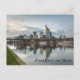 An evening photo of the River Main with skyline in Frankfurt am Main, Hessen, Germany is featured on this postcard.
