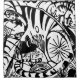 Woodcut print from 1912 showing abstract black and white tigers in a jungle setting.