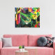Very impressive product! The canvas is sturdily made. It features a saw tooth hanger on the back, making it easy to "try out" the canvas in several rooms until I found the best location. It attracts good comments from my friends. I love it! The printing is wonderful! Colors are as bright and crisp as they appeared on the website.