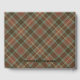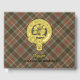 Clan Fraser crest badge surrounded by a strap and buckle over weathered hunting tartan background. Custom front, back and spine text.