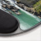 The plastic backing is nice and sturdy. The grippy pads underneath keep the mouse pad where I put it on my table. The pad the mouse sits on is cut well to fit the backing. The wrist pad is perfectly soft, supportive, and thick. I'm left-handed, and this mouse pad works just as well for me as it does for my right-handed friends. I'm the designer of HippieClecticHope products. I'm blown away by how well my intricate fractals turn out on the tangible items in the Zazzle Marketplace. This particular mouse pad ***appears*** like a 3D object... A mathematically-engineered rainbow black opal, inlaid under transparent fabric...
