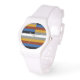 I only have one complaint. I ordered the watch with clear case and strap, and what was sent was white case and strap. I'm going to keep it because 1) it looks very nice in white, and 2) it would take too long to get a replacement made and sent in time for my occasion. Aside from the mix up with the color, the watch does look very good in white. The purple dial is actually sparkly which did not show in the online images. That was a nice surprise. If you like Swatch watches this is very similar to those. It's 33.6mm in diameter, 10.5mm thick, and 40.6mm lug to lug. Stainless steel case back says 3ATM/30m WR, so no swimming or showering or submerging this one. If you like Woodstock, this is a great choice.