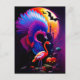 Freaky Halloween flamingo horror movie style postcard greeting. Twisted weird flamingos, vampire bats, a giant orange harvest moon, and an eerie jack o lantern pumpkin carving. all in purple and orange, make for a strange but very fun Halloween party invitation or seasonal note card.