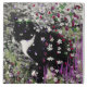 Freckles in Flowers I - Black White Tuxedo Kitty Ceramic Tile